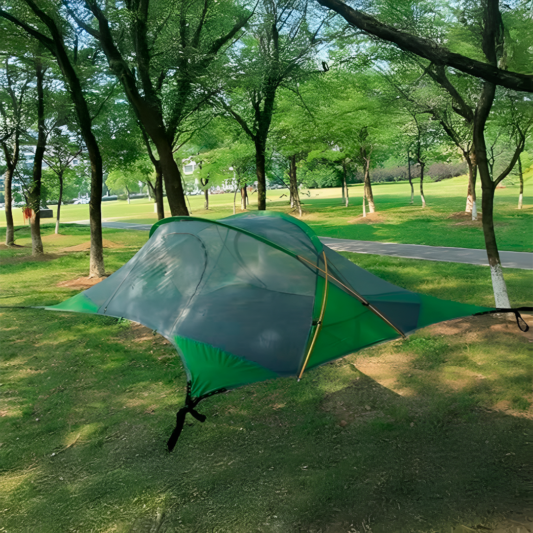 Su sistema de soporte de cuatro esquinas transforma las hamacas tradicionales en un refugio estable, capaz de acomodar a varias personas con total comodidad y seguridad. Además, cuenta con la opción de un soporte independiente que te permite instalarla en cualquier lugar, incluso donde no haya árboles.
