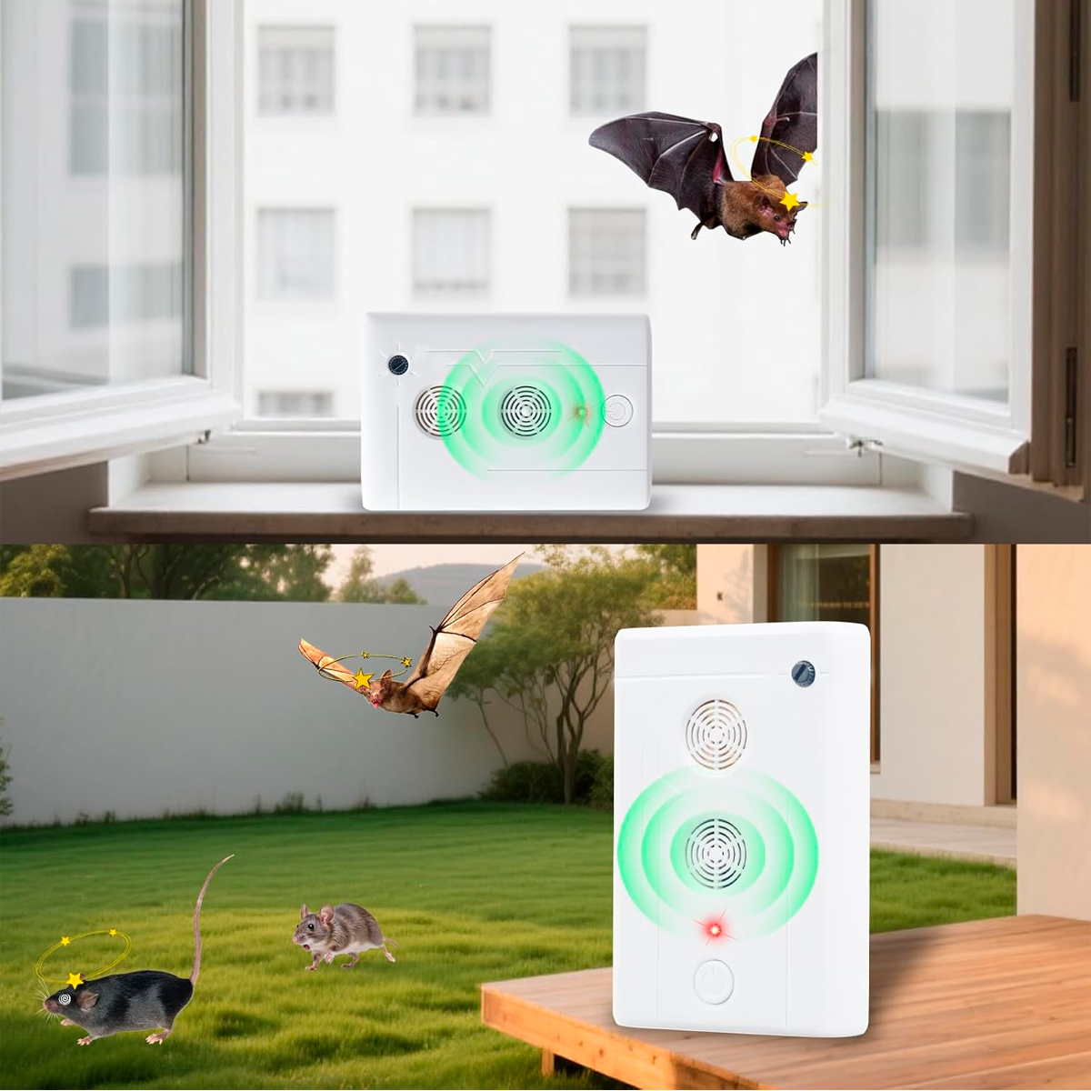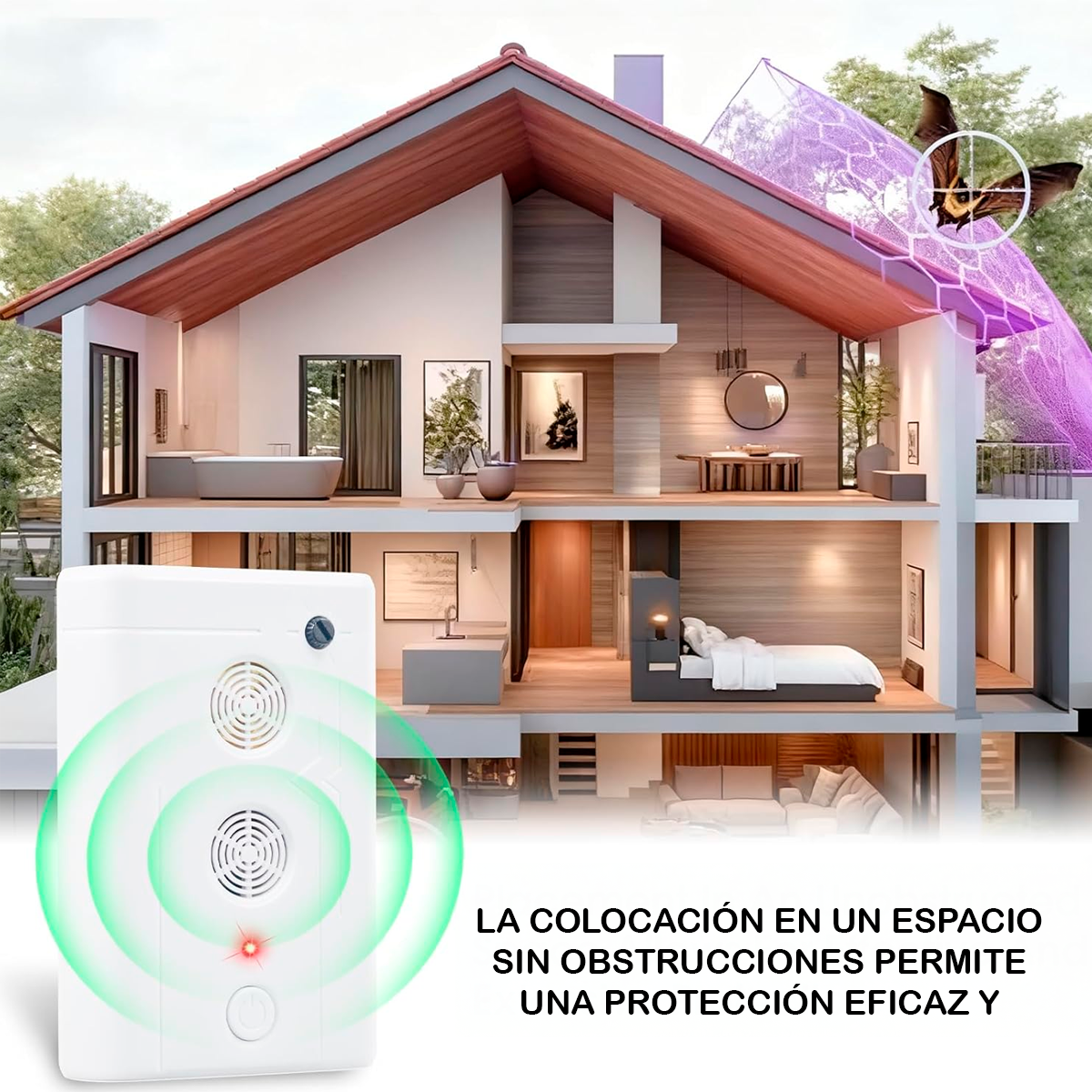 👆 Precio exclusivo para compra aquí online. Para pago a plazo, consúltanos.El Dispositivo Ultrasónico de Disuasión de Murciélagos para Interiores utiliza tecnología de ondas de alta frecuencia para alterar el sistema de orientación de los murciélagos, provocando que se sientan incómodos y se alejen. Su diseño compacto y elegante es ideal para instalar en áticos, garajes, terrazas o aleros, siendo completamente seguro para humanos y mascotas. No utiliza productos químicos, olores ni ingredientes dañinos, ofreciendo una solución limpia, silenciosa y duradera.