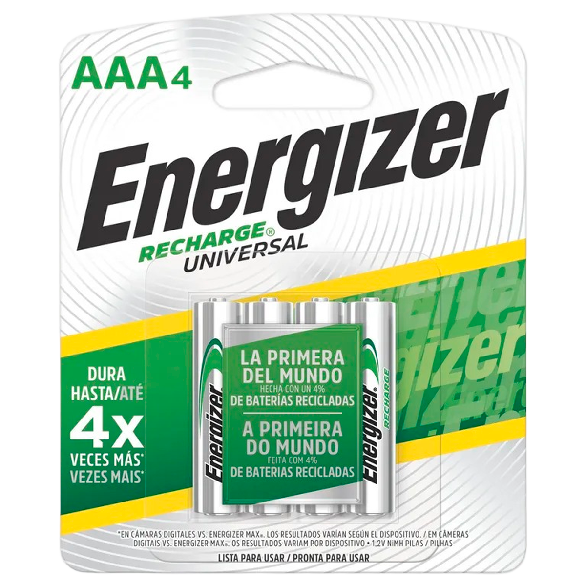 Mantén a tu equipo de trabajo totalmente energizado todos los días con las baterías recargables universales de larga duración Energizer Recharge. Las baterías recargables, precargadas y listas para usar desde el primer momento, te ayudan a ahorrar dinero y a generar menos residuos con el tiempo, reduciendo el impacto ambiental. Cada batería Energizer Recharge Universal AA puede recargarse y utilizarse hasta 1000 veces. ¿No necesitas usar tus baterías cargadas de inmediato? La carga se mantiene hasta por un año en almacenamiento. Solo necesitas cualquier cargador Energizer para alimentar tus dispositivos cotidianos, como GPS, cámaras, dispositivos de audio digital y equipos inalámbricos, manteniendo la energía siempre en funcionamiento.